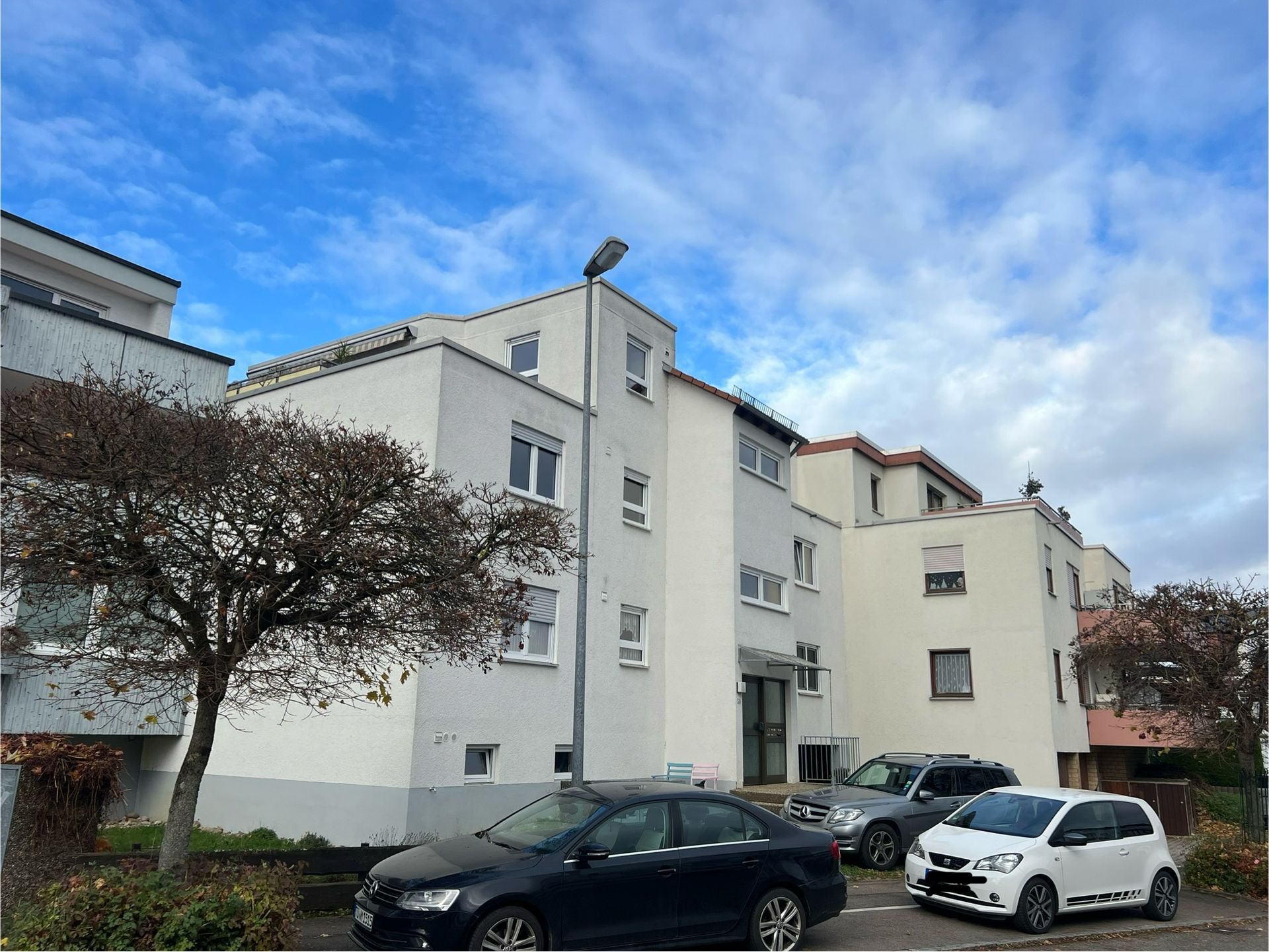 Direkt vor dem Haus befindet sich der zur Wohnung gehörende Außenstellplatz. Das Haus ist in einem sehr gepflegten Zustand.